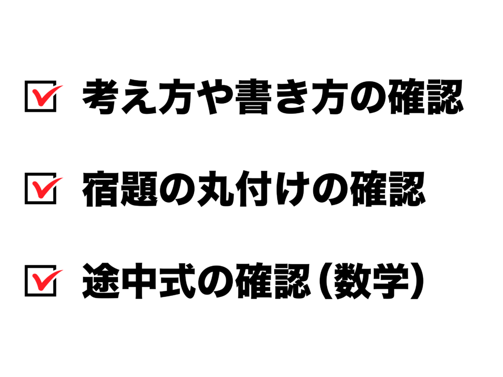 授業だけでなく、宿題の丸付けや添削、途中式や書き方まで確認しながら、小さなミスや「基礎・基本の抜け」を見逃しませんよ。